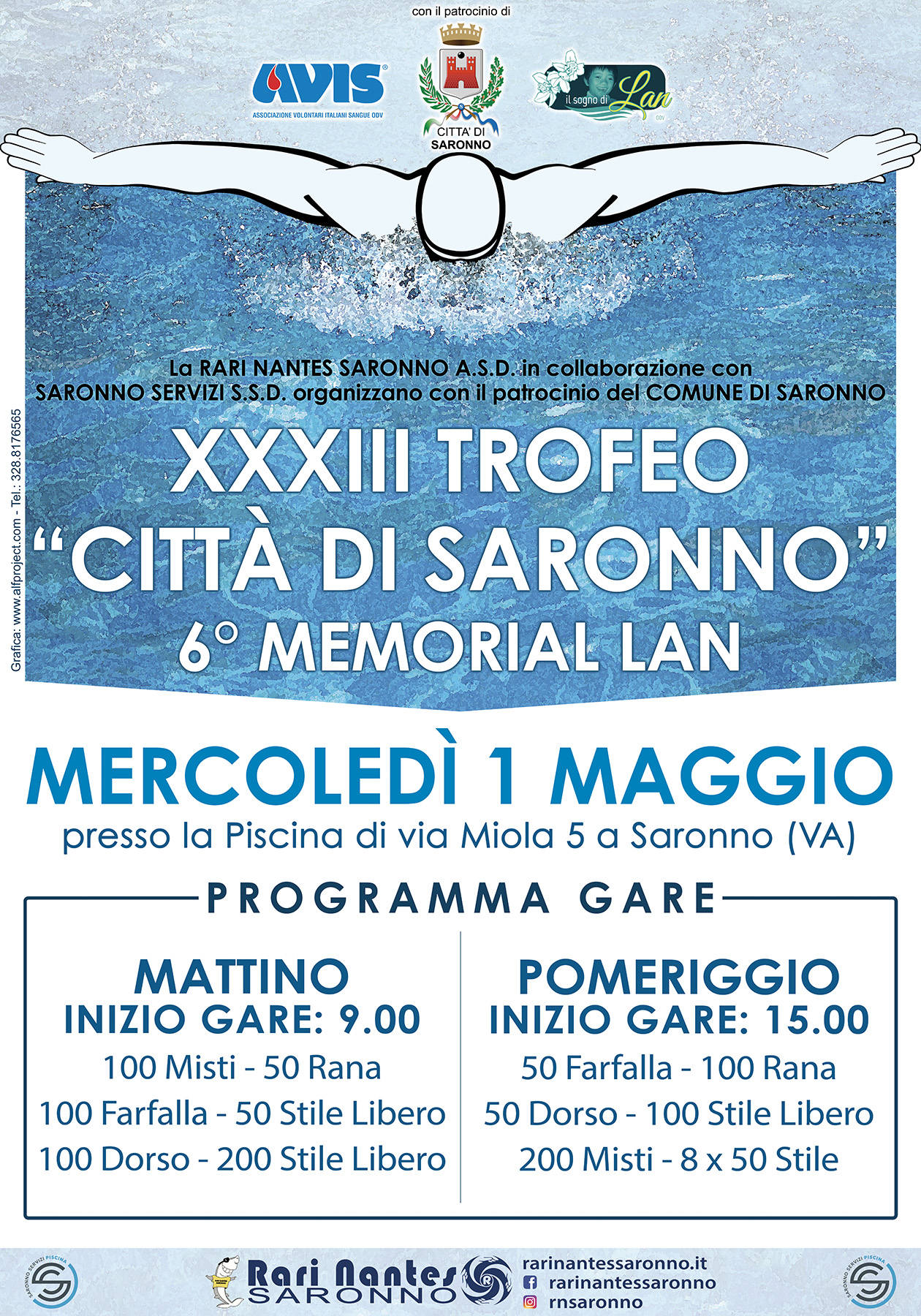 XXXIII Trofeo "Città di Saronno" 6° Memorial Lan, mercoledì 1 maggio 2024, presso la piscina di via Miola, 5 a Saronno (VA).